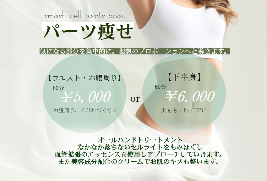 ウエスト・お腹周りor下半身から選びいただきお手入れさせていただきます。