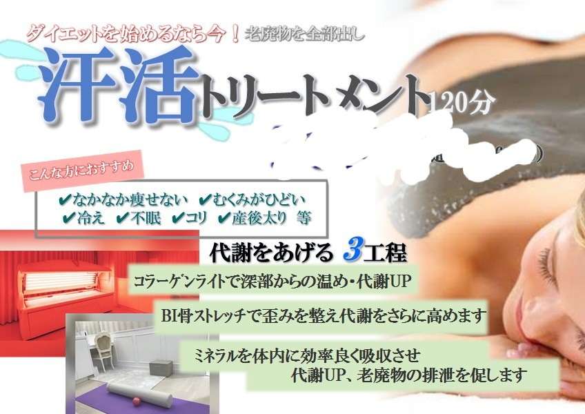 心も体もスッキリとできるお手入れが只今キャンペーン中の”汗活トリートメント”です。