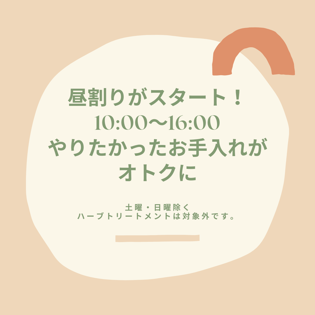 この度、ルイーズ レヴェでは期間限定の企画といたしまして平日の朝10:00~16:00までにご来店ただいたお客様にとってもオトクな昼割を始めました!!