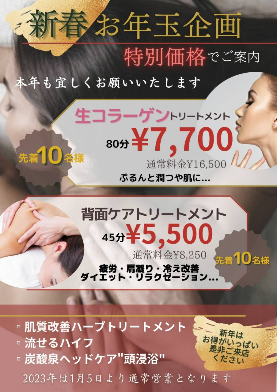 新年 明けましておめでとうございます。 2023/01/06 新年 明けましておめでとうございます。 今年は卯年、ルイーズもウサギさんのようにピョンピョン忙しく跳ね回る一年にしたいです。 新春 特別企画といたしましてお年玉企画をご用意し皆さまのお越しをお待ちしております。 さらに、期間中ご来店いただいたお客様にはお年玉プレゼント!! 1年の始まりはルイーズ レヴェからはじめませんか? 今月のキャンペーン